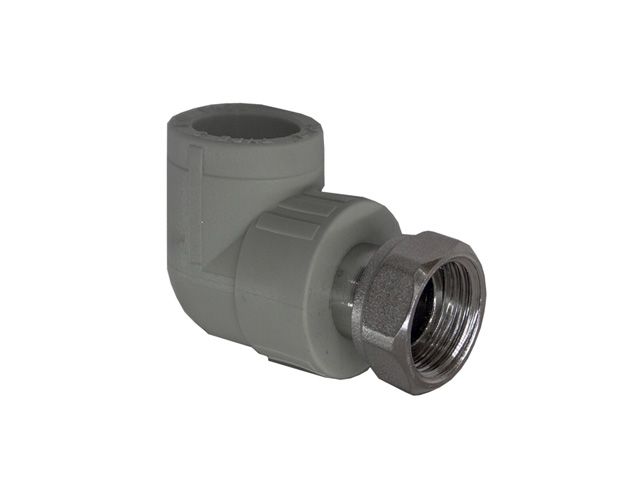 Колено ПП с накидной гайкой 25х1", серый РосТурПласт